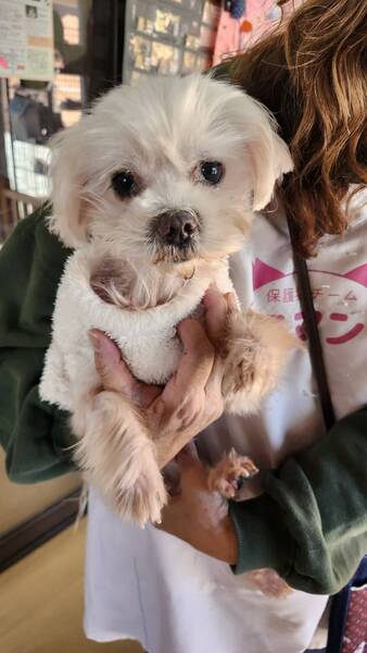 | 特徴(性格など) | 【仮名】まるっちょ 【性別】男の子 【犬種】マルチーズ 【年齢】推定7~8歳 【体重】2.9kg 【トイレ】練習中 【お散歩】練習中 【留守番】出来ます 【トリミング】2ケ月に1回ぐらいのトリミング 【健康状態】甲状腺機能低下症 パテラ左右共にグレード3 マラセチア皮膚炎 【お薬】甲状腺機能低下症内服薬1日2回 マラセチア皮膚炎内服薬1日1回 【詳細】少し人見知りしますが、しばらくすると慣れます。マイペースな性格で、1人の時間を楽しんでいます。他犬とも仲良くできて、とくに女の子が好きな様子です。 皮膚炎と甲状腺機能低下症の為、脱毛している箇所が多数あります。週に1度程度の薬用シャンプーをしています。 |