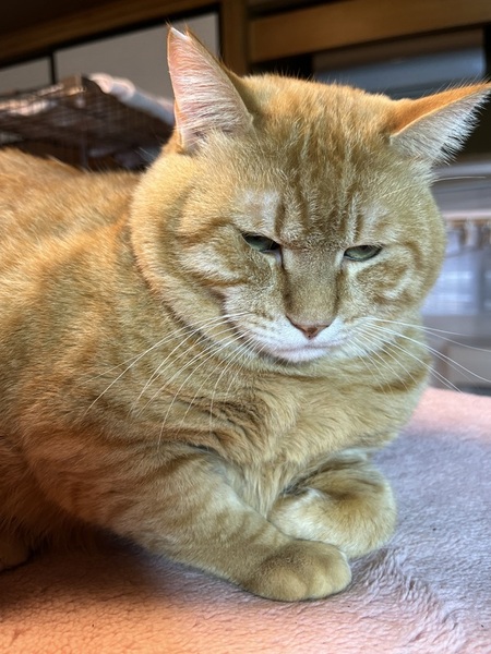 | 特徴(性格など) | 茶トラの大柄な子 人慣れは十分に出来ていて、甘えてすり寄って来ます。 寒がりなようで、いつもストーブの側でまったり寝そべっています。 |