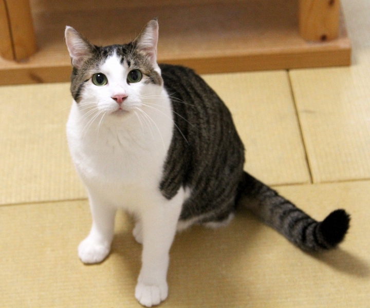 | 特徴(性格など) | 《容姿》 くっきりしたマスカットグリーンの瞳が凛々しい正統派ハンサムボーイ・マリンです。 手足が長くて腰高、比較的大柄でのびやかな体型の持ち主で 密で艶やかな被毛は柔らかく撫で心地抜群で、完璧にまっすぐなするりと長い太めの尻尾はマリンの自慢の一つです。 《性格》 信頼する人間に対しては、足元や机の上でコロンとヘソ天になり長ーく伸びて「お腹撫でて~」と甘えるかなりの甘えん坊ですが、ひとしきり撫でてもらうとすぐに満足して離れていくので人間と程よい距離を保って暮らせる子です。 じゃらし遊びが大好き!好奇心が旺盛で私が作業をしていると「何してるの?」とすぐに手元を覗きに来る可愛い性格です。 お外生活でかなり怖い思いをしたようで、見知らぬ人を怖がり警戒しますが、安心すると本来の甘えん坊の姿を見せてくれます。 マリンが新しい環境に慣れご家族と信頼関係を築くまでの間、その過程を楽しみつつマリンを温かく大らかに見守って下さる優しいご家族を希望します。 猫社会のマナーやルールを身につけており猫仲間と上手に折り合うことができますが、たまにはしゃぎすぎて他猫から怒られることがあります。 トイレは完璧で失敗したことがありませんし、爪とぎでのみ爪を研ぎます。 食欲旺盛で朝晩、ドライフードとウェットフードを好き嫌いなく完食します。 容姿、健康面、生活面、全てに於いて優等生!お留守番も完璧です。 末永く大切な家族の一員としてマリンを守り慈しんでくださる愛情深いご家族に見つけていただけますよう願っています。 健康状態 必要な医療処置は全て終え、健康状態は完璧です。 * 去勢手術 : 済み * ウイルス検査 : FIV(-)・FeLⅤ(-) * 3種混合ワクチン : 接種済み * ノミ・ダニ、体内寄生虫 : 駆虫済み 元来丈夫な体質のようで体調を壊したことが全くない健康優良児です。 |