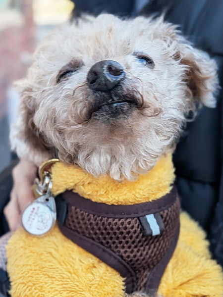 | 特徴(性格など) | ★☆性格☆★ とっても穏やかで、人間が大好きな甘えん坊です。預かりボランティアさん宅では、ボラさんの後をついて回って“ストーカー化”しているくらい(笑)。 白内障のため視力は良くないと思われますが、部屋の中ではトコトコと歩き回るなど元気に過ごしています。 人の気配を感じるとトコトコと寄ってきて、「なでて」と足元に寄り添う姿はたまらなく愛おしいです。抱っこも大好きで、腕の中で安心しきって身を委ねてくれます。 一方で、時には自分の意思をしっかり通そうとする頑固な一面も(とはいえ嫌がって噛んだりすることはないのでご安心ください)。感情表現が豊かになってきたのは、心が満たされてきた証拠だと思っています。 ★☆ごはん☆★ 保護してすぐの頃は食欲も減退気味、かつフードの選り好みもあり、食がなかなか進みませんでした。 でも、預かりボランティアさん宅で穏やかな生活を送るうちに食欲は戻り、また食の好みも把握できるようになって、今は食べることが大好き!幸太郎にとって一番の楽しみになっています。 ウェットフードの方がお好みのようですが、現在はドライフードを中心にセミモイストフードとウェットフードを併用しながら与えています。毎食「まだかな?」とソワソワしながら待つ姿は、シニアとは思えないほどの活気にあふれています。 ただし、フードは限定的です。というのも、血液検査の結果、肝臓の数値があまり良くないため、低脂肪フードだけを与えています。 ★☆散歩☆★ 日々の散歩は大好きで、スムーズに歩いて鼻をクンクンさせての“クン活”を全力で楽んでいます。 視力が弱いせいかバイクや車の音は苦手で、かつ障害物への注意も必要ですが、車通りの少ない静かな道ではしっぽを上げてぐんぐん歩いていくほど。いずれの場合でも、リードを通して優しくガイドしてあげれば安心して散歩を楽しめます。 ただし、健康状態の項目でも記していますが、両後ろ脚に不安があるため、段差を昇り降りしたりなどの負担をかけないように注意が必要です。 ★☆トイレ☆★ おしっこは室内外のどちらでも、うんちは外でします。1月に去勢手術をしてからは、室内でおしっこをする回数がかなり減りました。 トイレは、視力が弱いせいもあってか使うのが難しく、室内ではマナーベルトを着けています。 ただ、膀胱炎になったことがあるので、マナーパッドをこまめに交換したり、マナーベルトを外す時間を作ったりして、清潔に保つようにしています。 ★☆留守番☆★ 大きな分離不安はなく、お留守番は比較的上手にできます。 留守番時はサークル内で過ごしてもらっていますが、ほとんど寝ているため、静かに待っていてくれます。 ★☆他の犬との関係性☆★ お散歩中のワンちゃんにも積極的に近づいてあいさつできる社交的なコです。ボクサーくんにも、柴くんにも、チワワちゃんにも、パグちゃんにも(笑)。 預かりボランティアさん宅には同居犬はいませんが、一次保護宅ではぶんたと一緒に過ごしていました。 基本的にぶんたとは離れて過ごしていたのですが、気分で(?)寄り添って寝てみたりと、とてもマイペースに過ごしていました。 ★☆健康状態☆★ 当団体でお世話をする間に、膀胱炎や大腸炎になるなど、一過性の不調が出ることもありましたが、都度、服薬などのケアをして治療は完了しています。 また、保護時の健康診断で「脾臓に腫瘤あり」と診断されたのですが、脾臓の摘出手術は完了しており、現在は心配のない状態になっています(腫瘤も良性のものでした)。 ただそれでも、14歳という年齢もあり健康状態についての懸念点がいくつかありますので、下記をご参照ください。 ■白内障 ■クッシング症候群の疑い ■前立腺過形成 ■口腔環境が悪い ■左後ろ脚:過去に股関節骨頭切除術の痕 ■右後ろ脚:股関節脱臼 ~白内障~ 白内障のため、幸太郎は視力は良くないと思われます。 本人はそれをあまり気にすることなくずんずん歩いてしまうので、散歩時など段差や障害物が近づいたらリードをコントロールして転んだりぶつかったりするのを予防しなければなりません。 また留守番をさせる際は、段差がないスペースを用意したり目を傷つけそうな箇所をカバーしたりといった工夫が、ケガの予防のために必要です。 ~クッシング症候群の疑い~ 健康診断の結果、「肝臓に影がある」「ALPの値が高い」「副腎がやや大きい」と指摘され、また普段から多飲多尿であること、皮膚が薄いことなど、クッシング症候群の特徴が当てはまっています。 肝臓の数値が高いためウルソを服用しており、経過を観察しているところです。 ~前立腺過形成~ 保護時、未去勢だった幸太郎は、未去勢の老犬によく見られる前立腺過形成の状態でした。当時、少量のおしっこを頻繁にしていたのですが、この影響だったと考えています。 ただし、脾臓の腫瘤摘出手術と同時に去勢手術も行っており、頻尿などの症状も徐