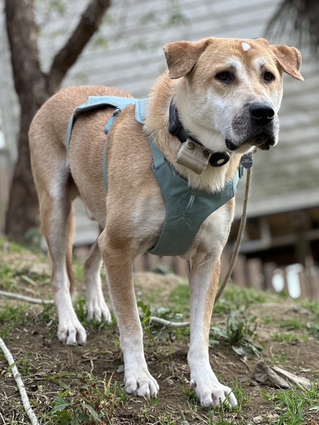 | 特徴(性格など) | 【はじめに】 ◉預かりブログ・HP・譲渡条件を【必ず】熟読の上、アグリドッグレスキュの専用フォームからご応募お願いいたします アグリドッグレスキューHP https://aguri.nomaki.jp/ 預かりブログ 「優しく賢い大きな男の子 ジョナサン」 現在所在地:神奈川県 横浜市 種類:その他の雑種 年齢:2~4才くらい サイズ:大型犬 雌雄:♂オス ワクチン:混合ワクチン接種済み 去勢:去勢手術済み 単身者応募:不可 高齢者応募:不可 茨城県動物指導センターより引き出し 体重 28kg位 ジョナサンは茨城県動物指導センターの集団房に収容されていた男の子です。 当時センターの収容犬数は180頭を超える過密状態で、その房の飲水用のバケツ脇を自分の場所と決め、そこで静かにひっそりと過ごしていました。 ごはんとオシッコ、ウンチ以外ここから動くことはなかったそうです。 センター情報にあったジョナサンの寸評は「なかなか動こうとしない子です。動かないので触れます」でした。 簡単には動かない男…それが当時のジョナサンです 笑。 人との暮らしはもちろん初めてのジョナサン… じっと警戒するところから始まりましたが、家、人、暮らしの音などを静かに観察し、持ち前の賢さで少しずつ理解し、新しい暮らしを受け入れてくれるようになりました。 【性格】 大型犬らしい穏やかで優しい男の子です。 なんでもすぐにできる器用なタイプではありませんが、経験を積み重ね、しっかりと学んでくれる賢さがあります。 家にいる時は相変わらず自分のベッドで「動かない男」ですが、最近少し心の扉が開き始めてきたようで、ごはんが楽しみでキッチンに見に来たり、帰宅時にお出迎えにきてくれたりする様子はとても可愛いです。 「いけない」ということもしっかり伝わる子です。 吠えたりすることもありません(というか、まだ一度も声を聞いたことがありません) 人にも他犬にも攻撃性は全くありません。 【散歩】 お散歩は大好きです。 首輪やハーネス、リードをもっていくと、自分で「よっこらせ」と立ち上がり、お散歩準備に協力してくれます。 当初は人や車を見ただけで藪に飛び逃げるようなところからのスタートでしたが、今はいろいろなところをゆったりと歩けるようになりました。 リードを引く人をしっかりと認識し、すぐ隣をとても上手に歩きます。 体の大きなジョナサンですが、通常の散歩ではその体重を感じることはほとんどありません ゆっくりでも、早足でも、止まる時でも、ちゃんと合わせてくれます。 散歩中緊張するような場面でも、きちんとオスワリをして落ち着くことができます。 大きな体でゆったりと歩くジョナサンとの散歩はとても楽しく気持ちの良い散歩です。 野犬気質の強いジョナサンですので、お互いの関係性を作り上げる散歩はとても大切です。 環境やハンドラーに慣れるためにも、じっくり時間をかけて段階を踏んであげてください。 【健康】 具体的な症状は出ていませんが、フィラリア陽性で現在はボルバキア治療中です。 譲渡時までに陰転していない場合は治療の継続をお願いすることになります。 おなかも調子がよく快便、良便が常です。 皮膚も痒み赤みはなく、被毛もつややかです。 その他血液検査等も問題はなく、とても元気です。 【トイレ】 基本オシッコ、ウンチとも散歩時に済ますことが多いです。 頻度は多くありませんが、家の中ですることもあります。 ペットシートをしっかり認識し上手にします。 【お世話】 お風呂、爪切り、歯磨き、体拭き、足拭き、ブラッシングなど基本的なお世話は何でもさせてくれます。 抱っこは少し緊張するようなので少しずつ練習して、だいぶできるようになってきました。 【ごはん】 ごはんはドライフードにササミやそのスープ、ウエットフードなどをトッピングしています。 先住犬と同じ場所で食べていますが、トラブルが起きることはなく、嬉しそうに待っています。 【他犬に対して】 威嚇や攻撃性、吠えたりすることはありません。 平和で優しい男の子です。 散歩で会う他犬とは大小サイズは関係なく、上手に挨拶をしたり距離をとったりしています。 【人に対して】 人に対しても少しずつ慣れてきました。 初めての人でも自分から匂いをかいだり、オヤツをもらったりすることができます。 【逸走・脱走対策】 穏やかな性格でも野犬気質の大型犬なので、しっかりした逸走脱走対策が必要です。 慣れていない環境では外への気持ちが強く出るので特に注意が必要です。 玄関や玄関に出るまでのアプローチへのゲートの設置、掃き出し窓や、椅子やソファ経由でたどり着ける出窓などへの柵の設置など最大級の対策をお願いします。 犬具の種類やその装着の仕方については具体的にお話しをさせていただくことになります。 エアタグ・GPSの常時装着をお願いします。 【留守番】 現在は先住犬との留守番、単独での留守番、ともに大丈夫です。 【就寝】 リビングにある自分のベッド