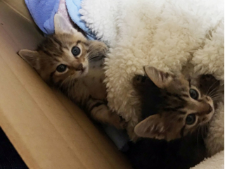 千葉県我孫子市在住です。 3年前までは関西で里親募集のボランティアをさせていただいておりました。 現在は家族+2匹の♂にゃんと生活しております。 今回は台風19号で被災された会社の後輩宅で保護されている子猫2匹を 10/11にお預かりし、臨時里親をさせていただいております。 10/12に獣医さんにて健康診断・スプレータイプのフロントライン(ノミ駆除・予防)実施いただきました。 診断結果は健康で、およそ10/12時点で生後10~14日、両方ともにオス。 体重:223グラムと285グラムでした。 離乳できたら車でお届けにあがれたらと考えております。 (できたら関東圏でお願い致します。) 10/20 350グラム・370グラムです。 現在トイレットトレーニング中で1匹は上手に出来ています。 また更新させていただきます。 ************************************************************ 【ご報告】2020/01/12 黒キジ(♂) 哺乳瓶育成経験のあるご家族様にご縁づきました。 先住猫姉さまにも、ご家族の皆様にも可愛がっていただいております。 茶キジ(♂)尿道が詰まり、尿毒症・腎臓に障害、生死の淵を2度ほど彷徨いましたが、 2週間置きに通院しつつも元気に過ごしております。 里親募集は諦め、我が家の3匹目の息子として育てていきます。 多くのご連絡、暖かいお言葉、感謝の気持ちでいっぱいです。 ほんとうにありがとうございました。 |