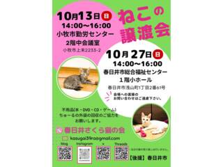 地域猫活動をしています。家は保護猫で満員状態。 野良猫を繁殖させないよう啓発活動もしています。 月一、二回の春日井さくら猫の会の譲渡会の開催もしています。 |
