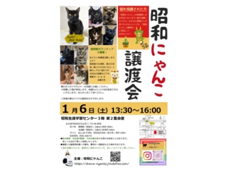 名古屋市昭和区で保護猫譲渡会をメインに活動している「昭和にゃんこ」と申します。 月に一度のペースで「昭和にゃんこ譲渡会」を開催し、飼い主のいない猫の里親探しのお手伝いをしています。 一歩踏み出すことで繋がる命があります。 ずっとのお家を探している猫たちに手をさしのべていただけませんか? |