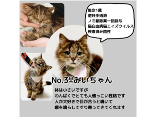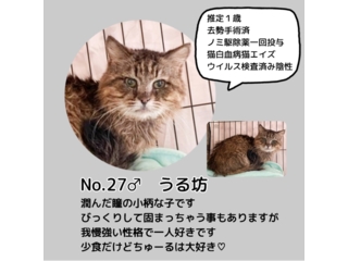 京丹後市で発生した、猫50頭以上の多頭崩壊現場からの救出猫ちゃんです。 現場より引き出し、去勢避妊手術をし里親様を募集しております。 里親募集中の猫は全頭年齢不詳、避妊去勢手術済、ノミ駆虫薬一回投与、猫白血病・猫エイズウイルス検査済み。 完全室内飼いでしたが、大変不衛生な環境で育ちました。 残る半生を可愛がってくれる方を探しています。 |