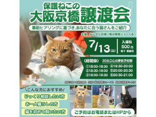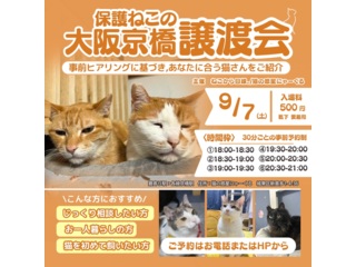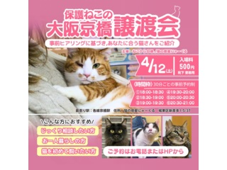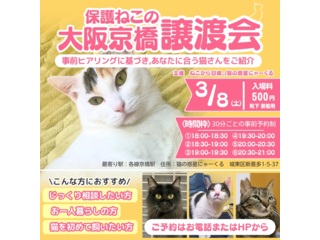 | 自己紹介・活動内容など | 大阪京橋駅から徒歩6分で里親募集をしながら猫カフェを開いています。ずっとのおうちを探している人懐っこいにゃんこと一緒にお待ちしております。 |