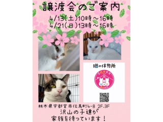 栃木県宇都宮市で【猫の休憩所】というシェルターを設営しています。 ウイルス陰性・エイズ陽性・白血病陽性・猫コロナ陽性の子達がいます。 主に過酷な外で生活していた子達ばかりです。 1頭でも多くの子達が幸せになれるように活動しています。 |