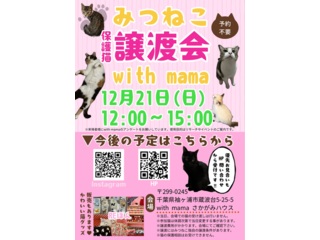 あまり背伸びはせずに、上限を決めて保護猫活動をしています。みつねこです。 譲渡会は月1回袖ヶ浦のwith mamaさんのモデルハウスで開催しています。 良かったら譲渡会にも遊びに来て下さい? |