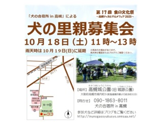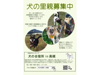 市民ボランティア「犬の合宿所in高槻」として、殺処分数の多い地方の保健所収容犬を引き取り、関西で新しい飼い主探しをしています。 保護犬を飼うことが文化として定着することで生体販売に伴う悲惨な繁殖犬の存在がなくなることと、 地方の収容犬を人口の多い地域で引き受けることで全体として処分数が減ることを目指しています。 |