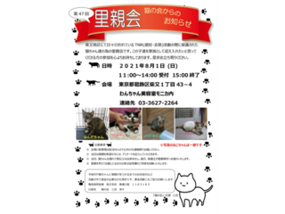 葛飾区柴又を拠点として野良猫のTNRや里親探しの活動と共に地域猫へ向けての活動もしています。 毎月第1日曜日には里親会を開催しています(第2日曜日の場合もあり) 主にInstagramに情報を載せています!@nekonokai_2016 |
