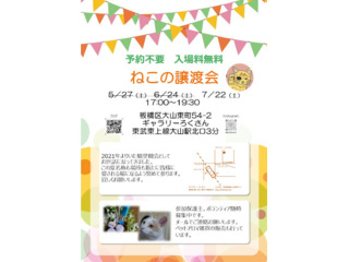 板橋区の地域猫活動と猫に優しい街づくりの為、里親会を主催します♪ 基本月1回開催 11:00~15:00 板橋区大山東町54-2 ギャラリーろくさん 東武東上線大山駅北口 |