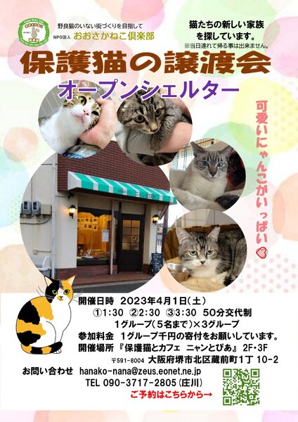 | 活動内容 | 近隣の野良猫のTNR シェルターでの猫のお世話 猫カフェの運営 里親さがしの譲渡会 など |